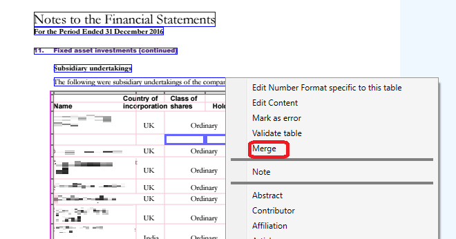 - merging or splitting rows, columns or cells where the boundaries where appropriate.