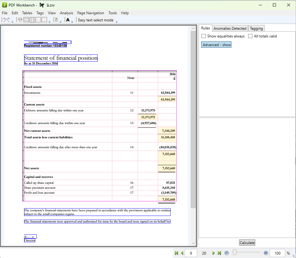 Furthermore the application included the facility for analyse the tables for totals and subsequently editing them, deleting falsely identified ones or adding new ones that the algorithms failed to identify.